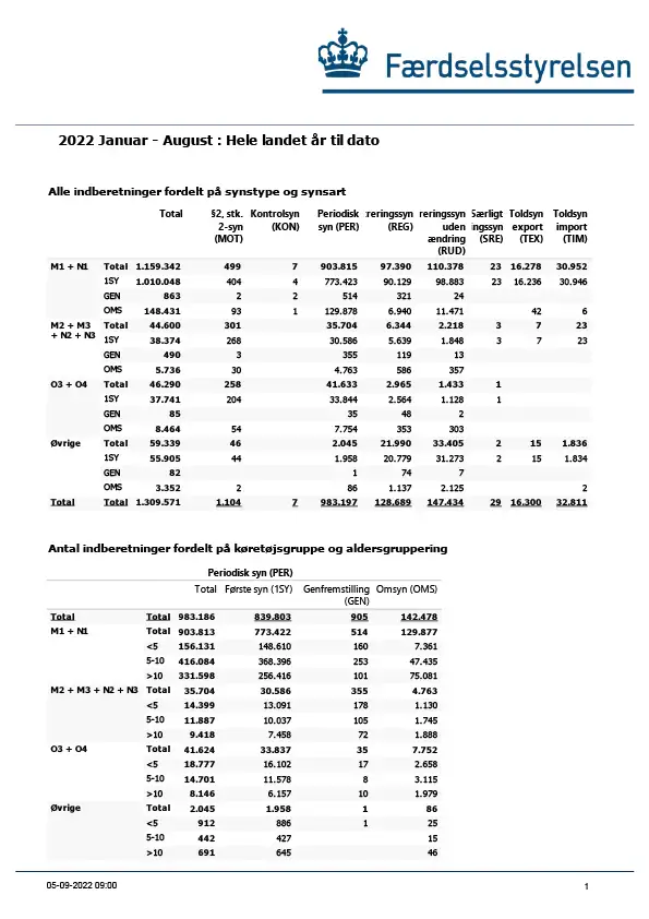Månedsrapport over fejl- og omsynsprocenter - Hele landet - August - 2022