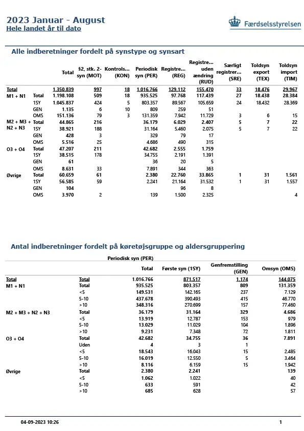 Månedsrapport over fejl- og omsynsprocenter - Hele landet - August - 2023