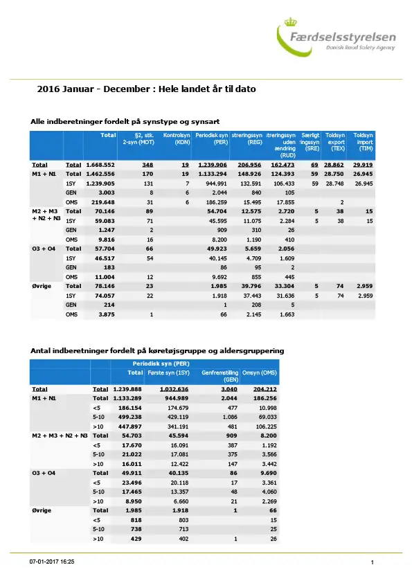 Månedsrapport over fejl- og omsynsprocenter - Hele landet - December - 2016
