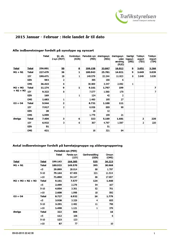 Månedsrapport over fejl- og omsynsprocenter - Hele landet - Februar - 2015