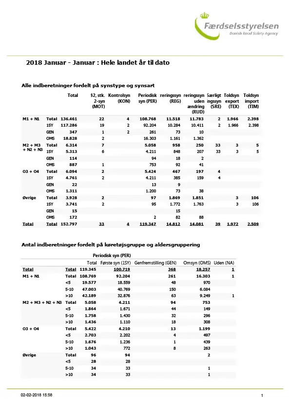 Månedsrapport over fejl- og omsynsprocenter - Hele landet - Januar - 2018