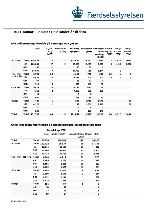 Månedsrapport over fejl- og omsynsprocenter - Hele landet - Januar - 2021