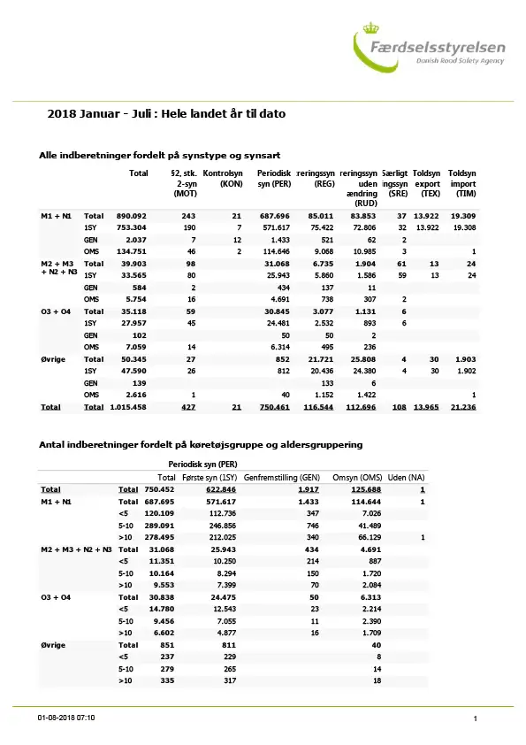 Månedsrapport over fejl- og omsynsprocenter - Hele landet - Juli - 2018
