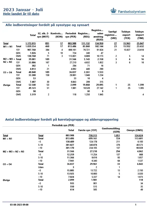 Månedsrapport over fejl- og omsynsprocenter - Hele landet - Juli - 2023