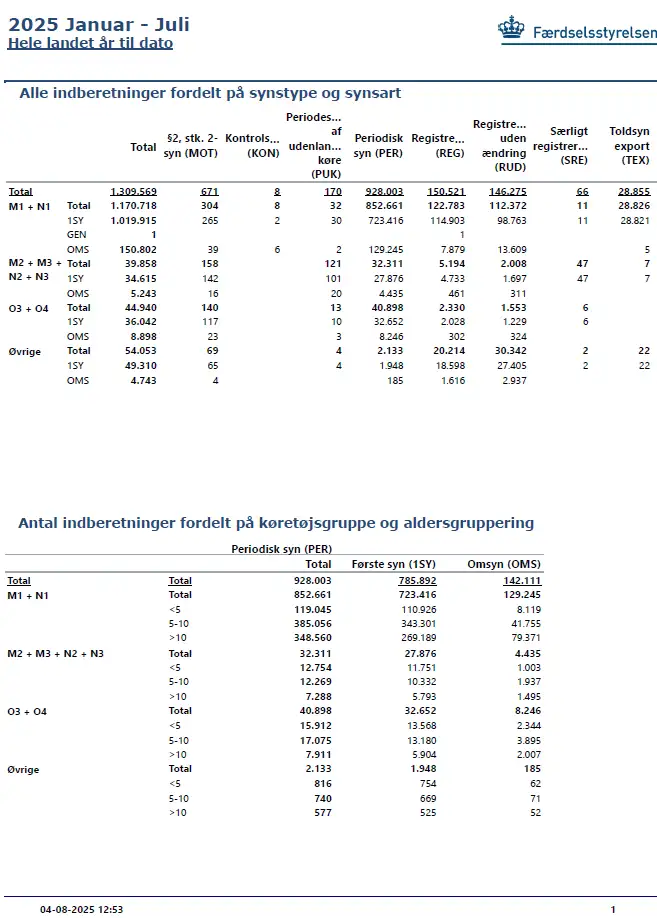 Månedsrapport over fejl- og omsynsprocenter - Hele landet - Juli - 2025