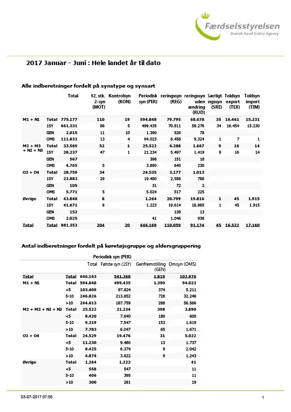 Månedsrapport over fejl- og omsynsprocenter - Hele landet - Juni - 2017
