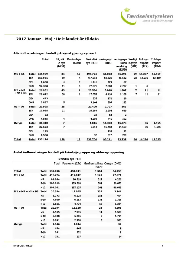 Månedsrapport over fejl- og omsynsprocenter - Hele landet - Maj - 2017