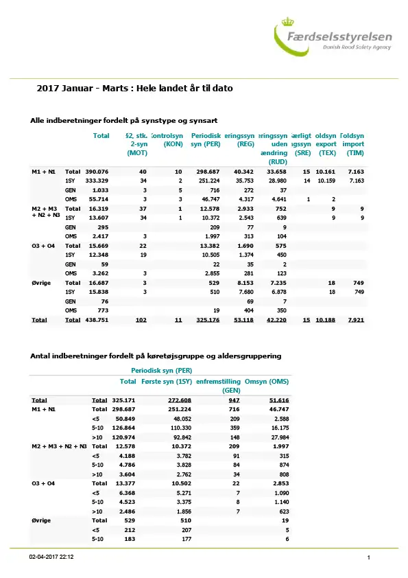 Månedsrapport over fejl- og omsynsprocenter - Hele landet - Marts - 2017