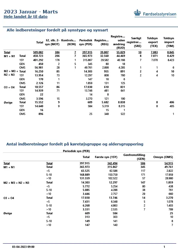 Månedsrapport over fejl- og omsynsprocenter - Hele landet - Marts - 2023