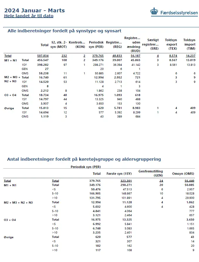 Månedsrapport over fejl- og omsynsprocenter - Hele landet - Marts - 2024