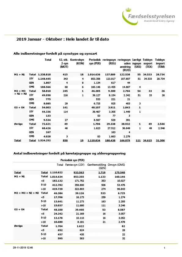 Månedsrapport over fejl- og omsynsprocenter - Hele landet - Oktober - 2019