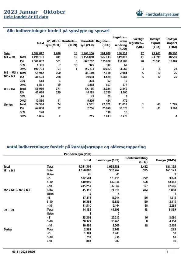 Månedsrapport over fejl- og omsynsprocenter - Hele landet - Oktober - 2023