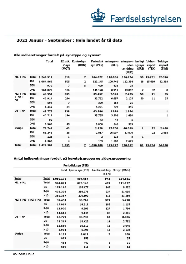Månedsrapport over fejl- og omsynsprocenter - Hele landet - September - 2021