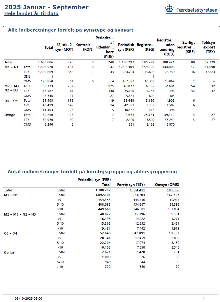 Månedsrapport over fejl- og omsynsprocenter - Hele landet - September - 2025