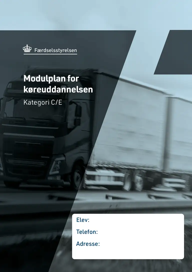 Her finder du modulplanen for køreuddannelsen til kategori CE (stor lastbil med stort påhængskøretøj).