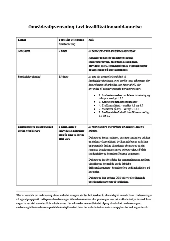 Områdeafgrænsning taxi kvalifikationsuddannelse