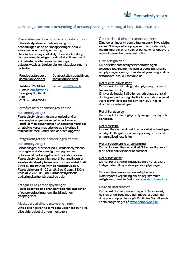 Oplysninger om vores behandling af personoplysninger ved brug af kropsbårne kamera