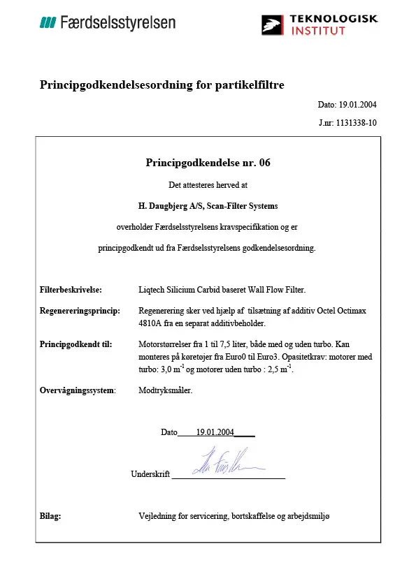 Principgodkendelsesordning for partikelfiltre nr 06 - ScanFilter Systems