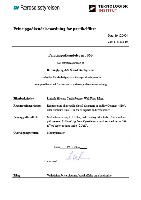 Principgodkendelsesordning for partikelfiltre nr 06b - H Daugbjerg AS ScanFilter Systems