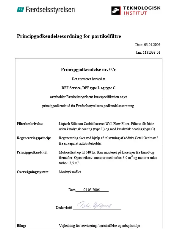 Principgodkendelsesordning for partikelfiltre nr 07c - DF Service DF type L og C