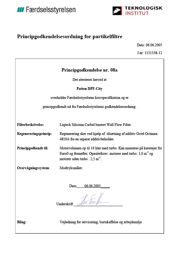 Principgodkendelsesordning for partikelfiltre nr 08a - Patton DFCity