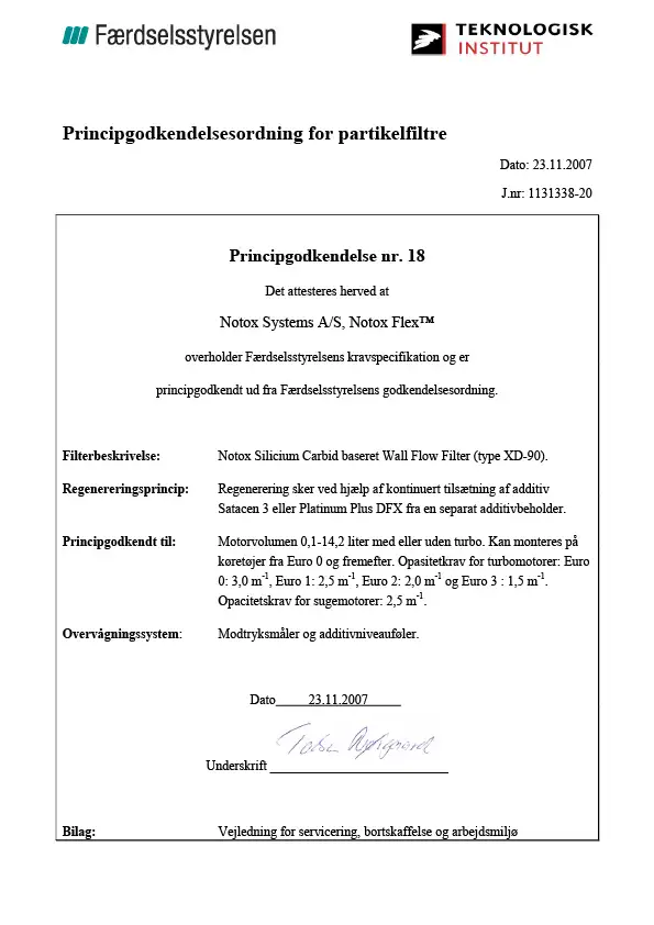 Principgodkendelsesordning for partikelfiltre nr 18 - Notox Flex
