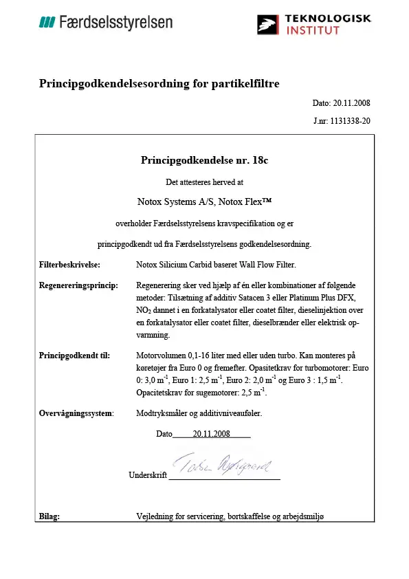 Principgodkendelsesordning for partikelfiltre nr 18c - Notox Flex