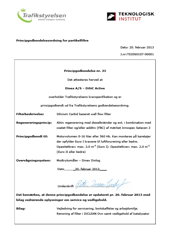 Principgodkendelsesordning for partikelfiltre nr 33 - Dinex AS DiSiC Active