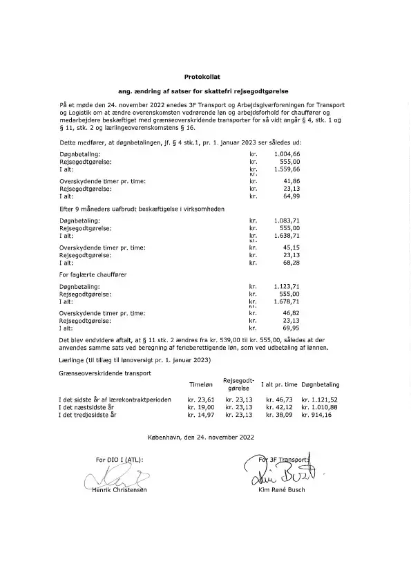 Protokollat - Ændringer af satser for skattefri rejsegodtgørelse (ATL)