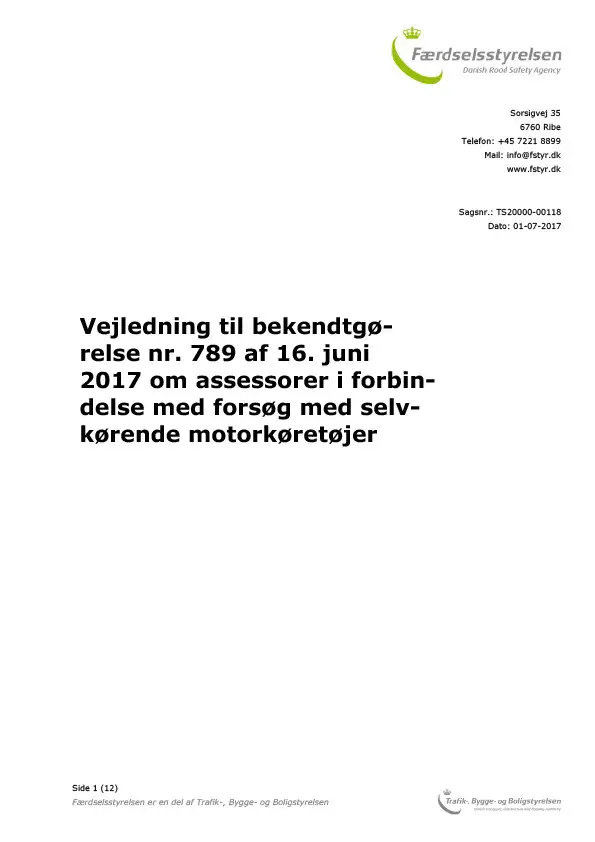 Vejledning om assessorer i forsøg med selvkørende motorkøretøjer