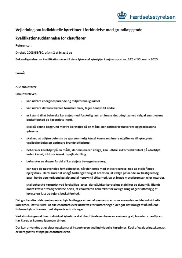 Denne vejledning kan bruges i forbindelse med grundlæggende kvalifikationsuddannelse for chauffører