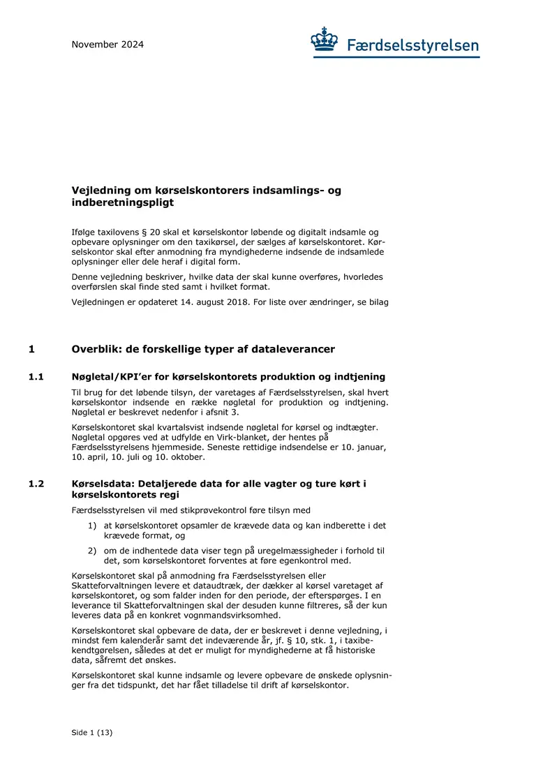 Vejledning om kørselskontorers indsamlings- og indberetningspligt
