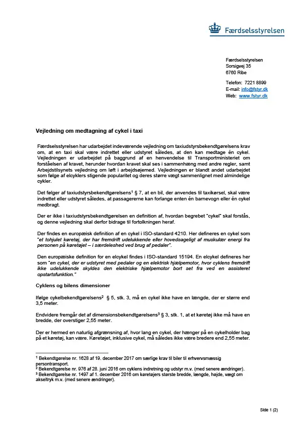 Vejledning om medtagning af cykel i taxi
