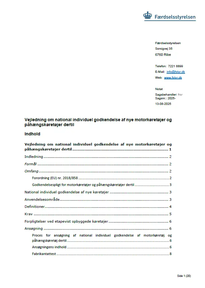 Denne vejledning omhandler alene national godkendelse af individuelle køretøjer.