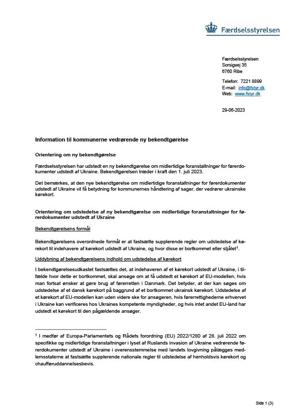 Vejledning om ny bekendtgørelse vedr ukrainske kørekort