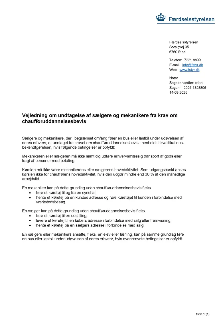 En mekaniker kan på dette grundlag uden chaufføruddannelsesbevis f.eks.