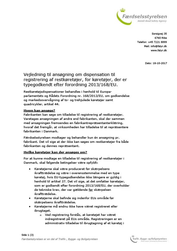 Vejledning til ansøgning om restkøretøjer for køretøjer typegodkendt efter Fordning 2013/168/EU
