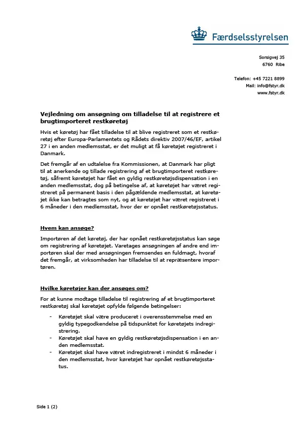 Vejledning til ansøgning om tilladelse til registrering af brugtimporterede restkøretøjer