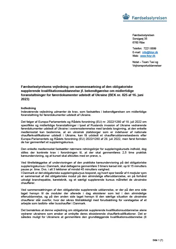 Vejledning til bekendtgørelse om førerdokumenter udstedt i Ukraine