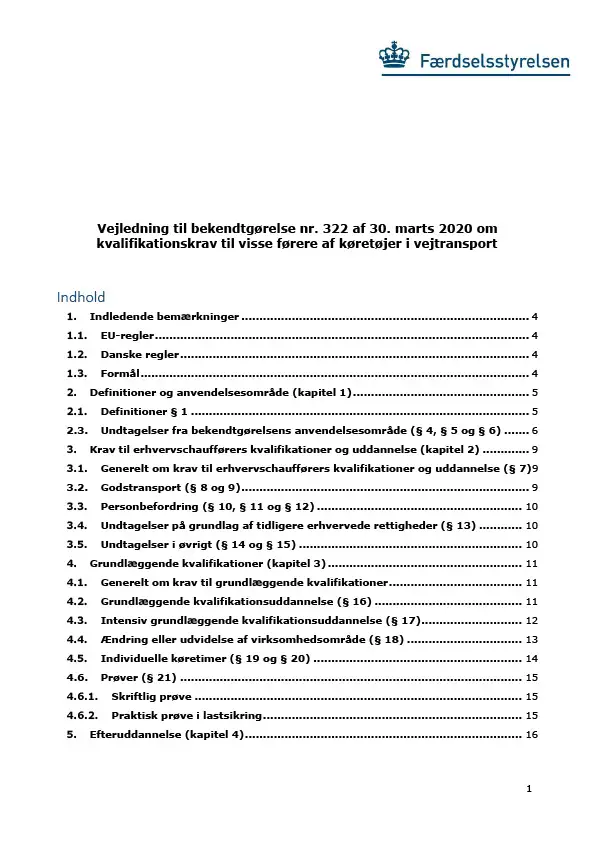 Her får du en vejledning til indholdet i bekendtgørelsen om kvalifikationskrav til visse førere af køretøjer i vejtransport